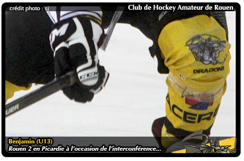 Troisième au classement de la Poule B d'interconférence en dépit de sa victoire 6 buts à 3 à Asnières, Boulogne ayant atomisé Caen (17-0) et Courbevoie vainqueur d'Amiens (7-1) devançant les Dragons à la différence de but, Rouen (2) n'aura pas démérité dans la Somme mais aura du se résoudre à abandonner la victoire dans les derniers coups de patin donnés. En effet, le score neutralisé à 2-2 un long moment, c'est dans la dernière minute de jeu de la rencontre que la formation picarde trouvera les ressources nécessaires pour faire plier le Dragon de Rouen 2 pour la première fois de la saison en interconférence. Quoiqu'il en soit, en dépit de ce revers picard, Rouen au bénéfice de son match supplémentaire reste vissé à la troisième place du classement à égalité de points avec trois équipes : Boulogne, Courbevoie et Amiens 2.