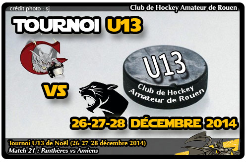 Première demi-finale dans le tournoi U13 entre la sélection des Panthères et les Gothiques d'Amiens. 2Ème de la Poule B, Amiens en difficulté lors de la phase de poule avec une seule victoire pour trois matchs nuls avait fort à faire face à des Panthères auteurs d'un parcours agréable au sein de la poule A avec trois victoires pour une seule défaite.
