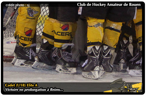 En attendant la réception du leader grenoblois pour des Dragons bien mal lotis pour cette dernière journée, c'est à Reims que les rouennais iront disputer leur rencontre de reprise après une coupure de presque trois semaines. Enregistrant le retour de blessure de leurs deux piliers défensifs, Victor Durand et Brieuc Houeix, la meilleure défense du championnat présentait de solides arguments à faire valoir face à une équipe champenoise que les normands pourraient croiser en quart de finale. Pour autant, habitués à perdre des points sur la petite glace de la patinoire de Barot comme en 2010 et 2012, Rouen U18 pouvait se darder de n'avoir jamais perdu à Reims. Pour autant, après une première période brouillonne vierge de buts où Rouen bégayait son hockey, à l'entame de la deuxième période, c'est Doryan Besseau pour les locaux qui trouvait l'ouverture sur un but heureux d'entrée de jeu (1-0 à 20'38) Incapables de réagir efficacement, les Rouennais ne parviendront pas à revenir au score lors du tiers médian en dépit de quelques occasions significatives, s'offrant même le luxe à la mi-match de se mettre en danger avec une double infériorité de quelques secondes bien fâcheuse à ce moment de la rencontre (30'39)