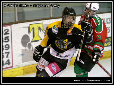 C'est un gros changement, vraiment incomparable avec ce que j'ai pu connaître jusqu'alors. Cela n'a absolument rien à voir. Ici à Rouen, tout le monde est là pour réussir et pour gagner sa place. Lorsque je jouais à Saint-Pierre et Miquelon, je jouais avec les mêmes amis depuis l'âge de 8 ans de Novice à Midget. Nous avions trois tournois dans l'année au Canada et le reste de la saison était consacré aux entraînements deux entraînements par semaine et un match le week-end où l'équipe était séparée en deux un peu à l'image de ce qui fait avec Rouen 1 et Rouen 2 dans certaines catégories.