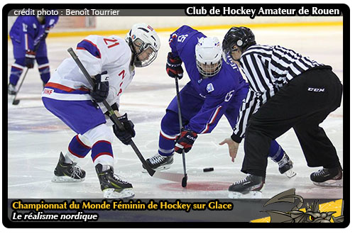 L'ambiance monte d'un cran, la France, à domicile, poussée par une patinoire bien remplie, va faire son entrée dans le tournoi. Les Bleues rentrent bien dans la partie, rapide dans ses transmissions, bien organisée dans son pressing, la France se procure les premières occasions. Ce sont pourtant les Norvégiennes qui prennent les devants, une perte de palet à la ligne bleue, il n'en fallait pas plus à Helene Martinsen pour s' échapper et tromper Caroline Baldin d' un tir entre les jambes.(0-1 à 05,08').