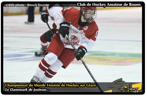 Danoises et Lettonnes, malmenées dimanche lors de leurs premiers matchs respectifs, s'affrontent pour le compte de la deuxième journée avec, à la clé une première victoire à saisir. Le Danemark prend tout de suite le contrôle du jeu et de la zone lettonne, elles ouvrent le score rapidement, Michele Brix trompe Evija Tetina à bout portant (1-0 à 3,07') Le Danemark, d'abord en supériorité puis à égalité numérique, passe le plus clair de son temps à l'offensive. Cependant, l' attaquante Lettonne, Agnese Apsite, profite d'une perte de palet pour s'en aller seule, tromper Amalie Joa, qui garde la cage adverse (1-1 à 7,10).