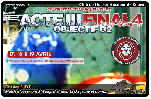« Nous sommes vraiment heureux de disputer ce carré final à Wasquehal, c'est une excellente chose pour nous de pouvoir prétendre à la montée et nous restons persuadé que cette équipe réserve à toute son utilité ici à Rouen et pas ailleurs. Nous sommes partis d'un groupe très difficile avec trois équipes de notre poule que nous avons retrouvé en quart de finale : Deuil-Garges, Wasquehal et Valenciennes et pourtant nous sommes parvenu à finir premier de l'ensemble des poules. Nos jeunes ont joué le jeu tout au long de la saison avec la collaboration des anciens et l'appui des nos entraîneurs Alexandre Sucré, David Dostal et de Jean-Marie Gréverend. J'ai vraiment hâte de connaître l'issue de ce carré final. « en pleine semaine des championnats du monde féminin disputé à Rouen, le Président du Club de Hockey Amateur de Rouen, Christian Caillot garde un œil du coté du nord de la France avec la finale du championnat de France de Division 3 où Rouen aura une jolie carte à jouer face à Marseille, Châlons et Wasquehal.