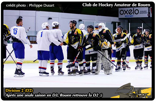 Longue aura été l'attente pour le Club de Hockey Amateur de Rouen sur le dossier épineux de la Division 2. Après avoir fait acte de candidature au 13 juin en dépit de sa troisième place obtenue lors du carré final wasquehalien à l'issue de la saison 2014-2015 (lire par ailleurs), les Dragons auront du faire montre de patience au gré des validations ou non de la Commission nationale de suivi et de contrôle de gestion (CNSCG) (lire par ailleurs) Quoiqu'il en soit pour le CHAR et surtout « ses » joueurs directement concernés, l'attente n'aura pas été vaine, la Fédération Française de Hockey sur Glace ayant aujourd'hui apporter sa bénédiction à la participation d'une équipe de Rouen en Division 2. C'est ainsi que les Dragons pourront évoluer dans une division qu'ils quittaient à l'issue de la saison 2012-2013, au sein d'une poule particulièrement colorée composée de Toulouse, Meudon, Annecy, Français Volants, Clermont-Ferrand, Valence, Roanne, Strasbourg II, Avignon.
