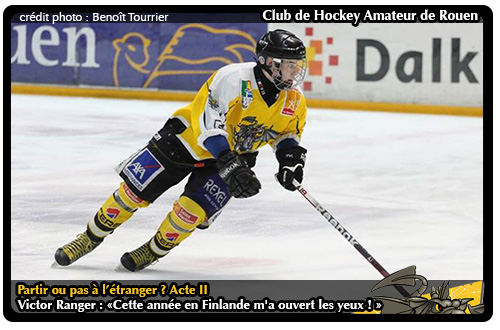Bien que plus fraichement débarqués en Finlande, même sons de cloche chez ses compatriotes Dragons Victor Ranger et Gabin Mainfray. Le premier, Victor débarqué de Rouen dans la capitale finlandaise la saison dernière au HIFK Helsinki reste positif quand à son année passée au « Pays du Père Noël » « Tout d'abord cette année fut un changement de vie, autant sportive que scolaire. Avant de venir m'installer en Finlande, je m'imaginais un pays au visage blanc, couvert de neige pendant toute l'année où le sport majeur est le hockey sur glace. Au cours de cette année, j'ai découvert le haut niveau du hockey finlandais, la différence se fait surtout ressentir sur la glace mais également en dehors. Tout est professionnalisé par rapport à la France, il y a une organisation incroyable, juste pour l'équipe des moins de 16ans, il y avait 5 personnes qui s'occupaient de nous plus les deux coachs et le préparateur physique. J'ai pu remarqué et découvrir ce qu'est le haut niveau du hockey.. Il y a beaucoup de concurrence, si tu ne travailles pas, tu n'a pas ta place au sein de l'équipe, il y a toujours 4 joueurs qui sont près à prendre ta place... J'ai surtout compris une chose essentielle dans le sport, il n'y pas que la force pure ou le talent qui fait de toi un bon joueur mais le mental est aussi important que le reste pour réussir. Il ne faut pas se poser de question et travailler le plus fortement possible. Ici un joueur n'est qu'un nombre parmi les autres.
