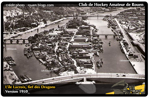 Fier fief des Dragons, la patinoire du Centre Guy Boissière trône au confins de l'Ile Lacroix entre les deux rives de la Seine. Si en habitué de la patinoire de Rouen vous vous êtes sans doute rendu un nombre incalculable de fois sur l'Ile Lacroix, vous êtes vous déjà posté la question de son histoire ? Saviez vous par exemple que c'est par l'entremise de Napoléon Ier que l'Ile Lacroix trouva enfin sa vraie place au sein de la ville de Rouen ? Pour les férus d'histoire locale ou tout simplement les curieux, petit cours d'histoire sur « Notre Ile Lacroix »