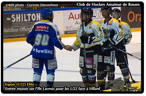 Clairement, il ne faisait pas bon d'arriver en retard pour ce deuxième match du Championnat Espoir Elite qui opposait Rouen à Villard de Lans sur l'Ile Lacroix. Une semaine après leur première victoire obtenue à Briançon dans la difficulté 2 buts à 1 (lire par ailleurs), les rouennais auront été plus à leur aise sur leur banquise en disposant des Ours10-6.