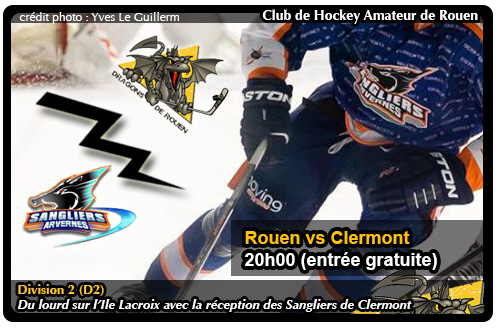Dragons de Rouen (2) vs Sangliers de Clermont (20h00, entrée gratuite)