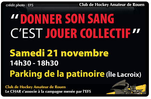 Pour la 4ème année consécutive, l'Etablissement Français du Sang organise une collecte de sang lors de la demi-finale de la Continental Cup en partenariat avec le Rouen Hockey Elite 76.