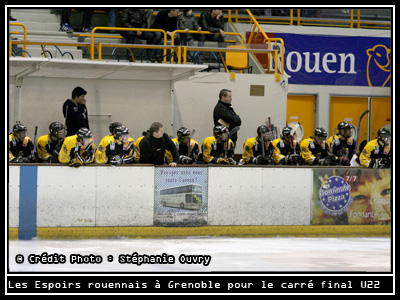 J'ai suivi la finale face à Reims dans les tribunes. Je suis vraiment content pour eux. J'ai été agréablement surpris par leur envie sur la glace, leur motivation de patiner tous dans le même sens. Le fait qu'ils marquent tout de suite leur a donné une énergie supplémentaire. Forcement, nous avons envie de faire pareil que les cadets et les seniors avec trois titres pour le club de Rouen. De plus, le fait d'avoir quelques cadets avec nous (ndlr : Thibault Maggi, Florian Duval, Anthony Rech et Raphaël Faure) nous rappellent ce qu'ils ont fait en finale contre Reims.
