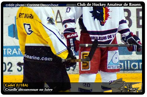Avec deux matchs à négocier pour tenter de faire plier l'ogre grenoblois, la tâche s'annonçait rude pour les U18A en demi-finale du championnat de France... Et le moins que l'on puisse dire c'est qu'elle le sera à l'issue d'une première manche concédée sur le score de 10-3. Sans tomber dans la caricature et pousser l'euphémisme à son paroxysme en parlant de confrontation en le « David Rouennais » et le « Goliath Grenoblois », difficile d'envisager de donner le statut de favoris aux Dragons face à l'armada grenobloise qui aura parcouru la saison régulière sans connaître guère d'accroc (lire par ailleurs)