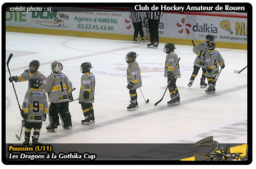 Troisième match au tournoi U11 d'Amiens, la « Gothika Cup » et match décisif pour les Dragons face aux Coqs de Courbevoie. Mal embarqués en début de journée avec une défaite 0-3 face à Amiens, les rouennais s'étaient bien repris en s'imposant sur le même score face à l'association Deuil / Garges. Alors que dans le même temps, Courbevoie était parvenu à décrocher le match nul face à Amiens avant de s'imposer 4-1 face aux Français Volants, les rouennais n'avaient pas d'autres solutions que de s'imposer face aux Coqs pour espérer disputer une place en demi-finale.