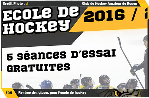 C'est le mercredi 31 août 2016 que notre école de hockey ouvrira ses portes pour le lancement de la saison 2016-2017. Vous avez bien lu, mercredi et non plus le mardi comme c'était le cas jusqu'alors. Révolution de velours au sein de l'école de hockey sur glace avec toujours deux séances, l'une le mercredi (17h30-18h30) et l'autre le vendredi (17h45-18h45) sauf en cas de match RHE76 où la séance est décalée au samedi. Pas de panique ! Pour vous y retrouver, vous pouvez télécharger le calendrier des séances de l'école de hockey en cliquant ici.