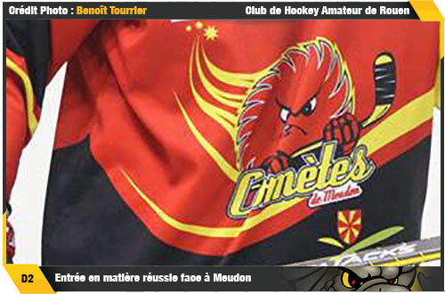 Alors que pour leur deuxième fois de leur histoire en D2, les rouennais se dirigeaient vers une victoire à l'occasion de la première journée de championnat, Alexandre Sucré pour son 101ème match en D2 à Rouen (cliquez ici) y apportait son « coup de patte » en portant le score à 6-2 dès l'entame de l'ultime manche de cette rencontre (43'37) Certes, l'attaquant meudonnais Léo Saint-Drenant édulcorait la note en solitaire (6-3 à 48'30) déclenchant un temps fort chez les parisiens le temps de quelques minutes mais les Rouennais ne se démobiliseront pas, pliant sans rompre avec de planter l'estocade finale par le virevoltant Arthur Nadaux (51'19) Plus rien ne sera marqué dans cette rencontre, les deux équipes se contentant de ce score de 7-3 à l'avantage des joueurs du duo Christophe Renard – Ari Salo. Une première victoire, trois points avec la manière une excellente initiative pour démarrer la saison pour la D2 du Club de Hockey Amateur de Rouen avant de se déplacer la semaine prochaine dans les Hauts de France pour y défier les Lions de Wasquehal.