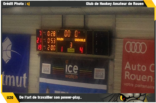 Attendu comme le sommet du championnat de France U20 avec la confrontation entre le leader grenoblois et son dauphin rouennais, c'est finalement une rencontre hachée par les coups de sifflet intempestif d'un arbitrage pointilleux à la limite de la maniaquerie pathologique qui se déroulera sur les bords de Seine avec à la sirène finale une victoire logique des Brûleurs de Loups de Grenoble 4 buts à 1.