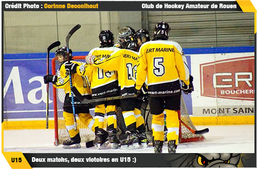 Indépendamment de leur succès chapardé sur leur glaçon face à Evry / Viry, les U15A auront fait une jolie affaire au classement avec le match nul concédé à domicile par Amiens face à Courbevoie. Forts de leur victoire face à Meudon, les U15B décrochent de leur coté leur première victoire en Minime Excellence et en profitent pour se relancer au classement.