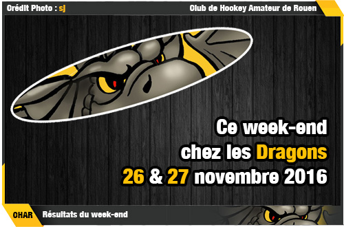 Double week-end en U17 et U15 avec deux matchs pour les équipes 1 et 2 de chacune des deux catégories. Toujours leaders de leur poule avec six victoires, les U15A après un week-end de repos bien mérités devront être vigilants sur leur glace avec la réception des Coqs de Courbevoie. Sur la troisième marche du podium à égalité de points avec Amiens (2ème) et à un point des rouennais, les Coqs qui s'étaient inclinés en début de saison sur la glace (2-9) face aux Dragons, leur seule défaite de la saison à ce jour, auront haussé le ton depuis avec notamment un match nul 4-4 décroché à Amiens. Méfiance pour les U15A de rigueur alors que les U15B, au sortir de leur succès au Havre 8-3 (lire par ailleurs), auront à gravir une montagne avec un périlleux déplacement chez les Français Volants en championnat excellence. Malmenés déjà sur l'Ile Lacroix 10-1, les Dragons auront fort à faire face au leader de la poule toujours invaincu avec neuf victoires.