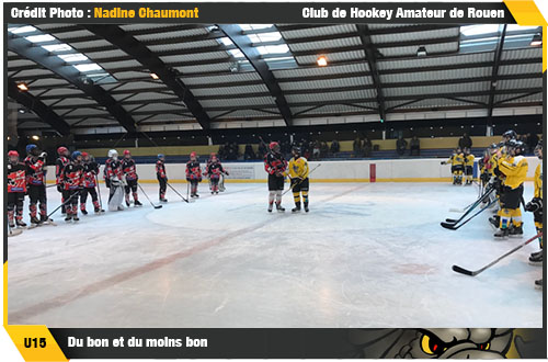 En s'imposant 18-3 à Neuilly sur Marne, les U15A auront profité de leur premier week-end sur la glace en 2017 pour conforter leur première place au classement de la poule. Plus en difficulté, les U15B auront du se résoudre, au terme d'une jolie bataille, à s'incliner 6-3 sur la glace de la patinoire de Caen La Mer.