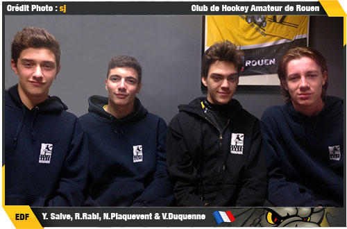 6 équipes participent à ce tournoi « jeune olympique » réparties en deux poules de 3. Tandis que la Slovaquie, la Biélorussie et la Turquie s'affronteront dans le groupe B, la France, de son côté, se retrouvera aux cotés de la Lettonie et la Russie. De quoi exciter la troupe des Dragons concernés plutôt enthousiastes à l'idée de vivre cette aventure « Cela fait toujours très plaisir d'être appelé en Equipe de France. C'est un privilège de représenter la France à cette occasion. Nous nous devons d'être exemplaire » commente Robin Rabl, l'un des intéressés qui poursuit « Nous avons vraiment hâte, c'est excitant de se dire que l'on va pouvoir se mesurer à la Russie par exemple» « Avec peut-être des futurs joueurs de NHL dedans » coupe Yoan Salve tout aussi souriant qui rappelle au passage que c'est également l'occasion « de représenter le club de Rouen » pour cet événement. A l'unisson de ses coéquipiers U17, Nicolas Plaquevent, pragmatique espère « prendre du plaisir. Ce n'est pas anodin pour nous d'être sélectionnés pour ce Festival Olympique, c'est une expérience qui va nous marquer pour notre vie et qui nous servira sportivement pour plus tard »