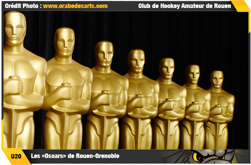 En ce week-end de cérémonie des Oscars, il était normal que les Espoirs de Rouen et Grenoble pour ce dernier choc au sommet de la saison régulière U20, se mettent au diapason en se parant des leurs plus beaux atours pour rafler les différents prix remis à cette occasion. Devant une foule très mesurée venue assister à cette cérémonie dans le théâtre de l'Ile Lacroix, la plus belle des récompenses celle du « but vainqueur » reviendra au numéro 16 de Grenoble, Benjamin Berard, auteur du deuxième but décisif en prolongation (61'19) mais bien avant cette remise du trophée suprême plusieurs autres distinctions seront décernées.
