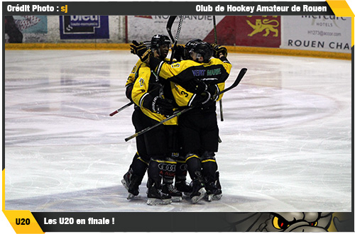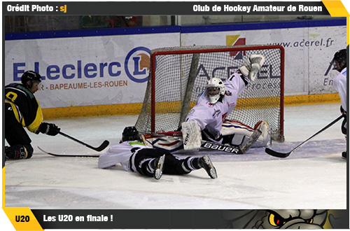 Un dernier effort à fort pour les rouennais, des derniers sacrifices à faire à l'image d'Enzo Cantagallo qui mettait en opposition sa jambe sur un puissant lancer amiénois. Cette équipe rouennaise, bien que malmenée une bonne partie de la rencontre aura raison de son adversaire qui finira par céder. Se frustrant peu à peu, les Gothiques amiénois face à une équipe de Rouen étonnamment plus sereine finiront par concéder la pénalité de trop pour « banc mineur » De quoi terminer la série en beauté avec la tentative de Jules Lefebvre, une première fois contrée, a que cela ne tienne, la deuxième sera la bonne, depuis la ligne bleue, le défenseur rouennais inscrivait le 4ème but rouennais et plus rien ne sera marqué dans cette rencontre (52'48) en dépit de deux dernières occasions, l'une rouennaise avec une envolée de Brieuc Houeix qui servait seul devant la cage un Joran Reynaud un brin maladroit sur l'affaire;) , l'autre amiénoise avec ce puissant lancer qui venait exploser l'équerre du but tenu par Erwan Jaouen. 4-3 score final. Les rouennais pouvaient se laisser aller à leur joie alors que les traditionnels « on est finale ! » surgissaient des tribunes. Restera à écrire un dernier chapitre à l'histoire 2016-2017 des U20 rouennais, la conclusion en finale sans doute à Grenoble dès la semaine prochaine.