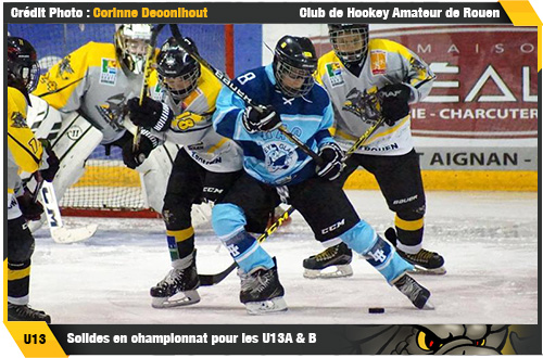 Que ce soit au sein de la Poule Haute ou de la Poule B, le classement des équipes U13A et U13B jaune et noir est déjà figé depuis plus semaines. Quoiqu'il en soit, pas question de galvauder les dernières rencontres pour les jeunes rouennais à commencer par les Dragons de Rouen (2) qui se voyaient confronter à l'association Le Havre / Cléon, son dauphin au classement. Alors qu'il ne leur reste qu'un match à jouer le 09 avril au Havre, les rouennais auront fait en sorte de remporter leur dixième succès de la saison en championnat. Déjà double vainqueurs (12-3 & 9-1) des confrontations face à l'association havraise, les rouennais sur l'Ile Lacroix auront conforté leur première place en s'imposant 8-0, se préservant une marge de dix points sur la deuxième place tenue par Le Havre / Cléon avec les Drakkars de Caen (2) en embuscade à deux points, à la troisième place.