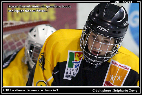 Pourtant bien mis sur la bonne voie par Valentin Moreau (17'41) en première période, les Dragons prenaient le train en pleine face en début de deuxième période par l'intermédiaire du minime rouennais surclassé Mathieu Joerger (24'52) A parité, le temps quelques minutes, le tableau d'affichage se colorera de jaune et de noir avant la deuxième sirène sur une offensive de bison de Guillaume Denis (2-1 à 31'36) Plutôt équilibrée jusqu'alors, le coeur de la rencontre chavirait et succombait aux charmes des Dragons de la Cadet Excellence. En l'espace de quelques minutes, les Dragons du duo Mahdidi – Marias Magill, enfilaient les buts tels des perles. En effet, Antoine Mony lançait la charge en sollicitant le portier havrais Sébastien Buch (40'10) Dans la foulée, Ronan Chesnel sortait son plus joli poignet pour effectuer un lancer atomique à faire pleurer les plus endurcis des gardiens (44'37) Louis-Marcel Poidevin et à nouveau Antoine Mony complèteront la belle série offensive des Dragons (46'06 & 47'58)