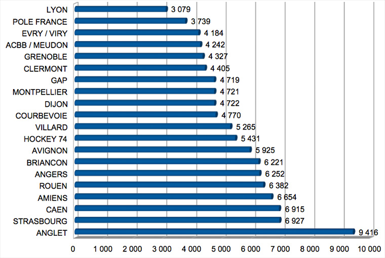 Moins d'équipes en lice en U20 avec seize équipes au départ également réparties en poules de quatre, quatre en l'occurence avec un départ à la maison pour les Dragons de Rouen face à l'Hormadi d'Anglet, Grenoble, Amiens et Hockey 74 complétant la poule A du championnat U20. 20 rencontres également à couvrir pour les rouennais U20 qui outre le double aller-retour au sein de leur poule, auront à effectuer un aller-retour face à la poule B composée d'Angers, Anglet, Dijon et Villard de Lans. Tout un programme pour les rouennais cette fois plutôt bien loti avec « seulement » 5398 kilomètres bien loin d'être des extrêmes d'Anglet à nouveau au sommet (9307 kilomètres) et Lyon également mieux servi avec 3769 kilomètres (détail par équipe)
