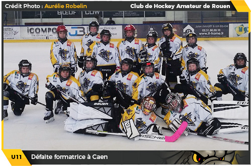 En se relançant fortement dans le deuxième tiers, les Dragons avaient vu leur appétit grandir proportionnellement. Le cœur au ventre, les rouennais batailleront pour revenir dans ce match et porteront dignement les couleurs jaune et noir jusqu'au bout. Même si hélas, à la sirène finale, en dépit de leurs efforts, les Dragonnets n'étaient pas parvenus à rentrer totalement au score, le tableau d'affichage de la patinoire de Caen annonçait un 13-10 à la faveur des locaux faisant oublier aux rouennais leur première période particulièrement délicate. Une chose est sure pour les jeunes poussins, l'enseignement est rude mais positif, c'est dans la difficulté que l'on progresse et les Dragons pourront toujours méditer sur ce proverbe japonais « on apprend peu par la victoire, mais beaucoup par la défaite » Pour le plaisir et le clin d'oeil en version originale : 我々は勝利から少しですが、敗北の多くを学ぶ