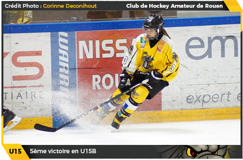 Sérieux depuis le début du championnat avec des succès face à Amiens (2) (10-1), Colombes (28-0), Meudon / Boulogne (15-1 & 14-3), la deuxième équipe U15 rouennaise n'aura pas dérogé à sa bonne dynamique de début de saison face à l'équipe francilienne avec une ouverture du score après seulement 22 secondes de jeu. Une entrée de match en fanfare qui mettra les rouennais d'emblée dans de bonnes dispositions. Si le reste de la première période ne permettra ni aux uns ni aux autres de marquer un but, les rouennais lors du deuxième tiers accélèreront sévèrement, surprenant et laissant sur place leurs adversaires totalement déroutés.