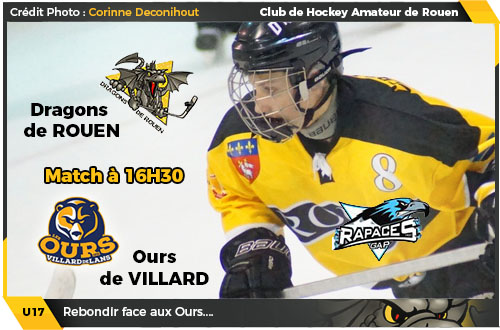 En souffrance la semaine dernière à la patinoire de Pole Sud face aux Brûleurs de Loups de Grenoble, les Dragons U17 auront l'occasion de rebondir sur l'Ile Lacroix avec la réception des Ours de Villard-de-Lans.