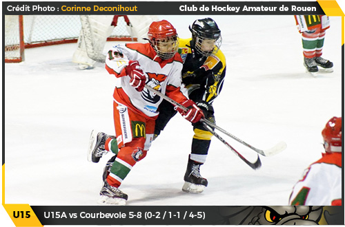 Vaincus le week-end dernier par les Drakkars de Caen 2-3 (lire par ailleurs), les U15 rouennais restent dans l'oeil du cyclone avec une deuxième défaite de suite concédée à domicile cette fois face aux Coqs de Courbevoie. Suffisamment rare pour être signalé, assister à deux défaites consécutives en U15 à Rouen à domicile est loin d'être monnaie courante, c'est pourtant la mésaventure qu'auront connu les rouennais ce samedi au terme de la rencontre les opposant à l'une de leur bête noire, les Coqs de Courbevoie.