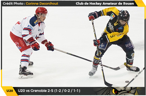 A la reprise de l'ultime tiers, les rouennais pouvaient au moins se féliciter de débuter la période mieux que les deux précédentes. Néanmoins, alors que d'entrée de jeu, ils bénéficiaient d'une situation en avantage numérique (40'05), l'artillerie offensive jaune et noir se révèlera être muette sur l'affaire, les minutes échappant inexorablement aux Dragons. Loin d'être animés du feu sacré, les rouennais semblaient résigner à la défaite à l'image de cette symbolique séquence en avantage numérique (47'55) où il ne se passera strictement rien sur le glaçon de l'Ile Lacroix. Fatalistes, les Dragons assisteront à la fin de la rencontre, les Brûleurs de Loups, eux, savoureront doucettement leur probable succès qui se dessinait peu à peu au fil du défilement du chronomètre de la patinoire de l'Ile Lacroix jusqu'à l'amorce des trois dernières minutes de jeu où les rouennais paradoxalement parviendront à réduire le score en infériorité numérique par Antonin Germond sur une situation rocambolesque. Sur un lancer dévié, le palet s'envolait vers les sommets de la patinoire de l'Ile Lacroix, la plupart des joueurs y compris le portier grenoblois, cherchant le point de retombée du palet, n'y parviendront pas au contraire d'Antonin Germond, seul à avoir suivi la trajectoire du palet, opportuniste pour la réduction du score à 4 contre 5 (57'11) Un but pour l'anecdote qui ne changeait rien à l'issue de cette rencontre, Dylan Fabre s'offrant même le luxe, sur une passe mal assurée en zone offensive des rouennais, d'inscrire le dernier but en cage vide pour un succès logique et efficace des Isérois 5 buts à 2 (59' 34) face à une équipe de Rouen grevée par les absences.
