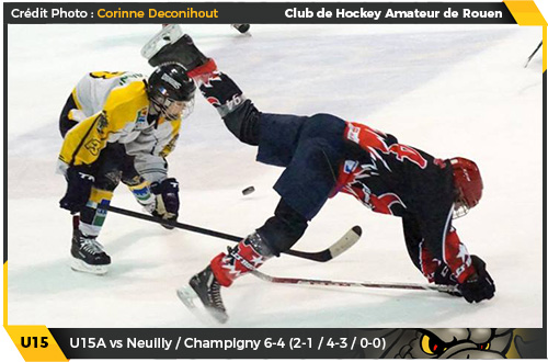 Avant le déplacement du leader caennais à Boulogne ce dimanche, les Dragons U15, de retour au championnat, auront mis la pression sur les Drakkars en s'imposant sur leur glaçon face l'association Neuilly / Champigny sur le score de 6 buts à 4.