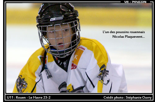 Ainsi, alors que les cinq dernières minutes de la rencontre étaient déjà franchies depuis quelques secondes, les rouennais menant au score 23 buts à 1, le havrais Simon Damaslene s'arrachait, patinait comme un diable pour s'extraire de la nasse défensive rouennaise avant de trouver l'ouverture dans un trou de souris pour inscrire le deuxième but de son équipe. Un deuxième but sans intérêt aurait-on pu penser tant l'issue de la rencontre était déjà connu. Pas pour le petit havrais, large sourire, yeux pétillants de joie qui revenait vers son banc les bras levés en faisant un signe à ses parents dans les tribunes pour indiquer qu'il était tout simplement heureux d'avoir marquer son deuxième but de la soirée. Un plaisir simple de gamin très loin des considérations des tribunes sur l'ampleur de la défaite, de la victoire suivant le camp où l'on se trouve, qui joue, qui ne joue pas, qui marque, qui ne marque pas. Peu importe, juste la joie de jouer au hockey et de prendre du plaisir sur la glace aux cotés de ses coéquipiers. Scène de vie à méditer...