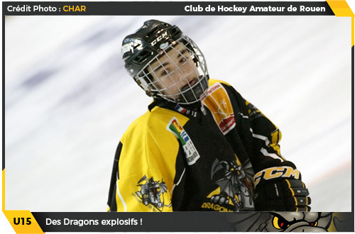 Comment se remettre d'une période aussi sinistre ? La question mérite d'être posée tant les Grenoblois auront pris une tornade pendant vingt minutes sans jamais parvenir à sortir la tête de l'eau face à une équipe de Rouen, il faut bien l'avouer, en pleine réussite. Et de questions, une chose est sure, Théo Quitteville, lui ne s'en posait pas et poursuivait son incroyable tournée offensive. S'offrir cinq buts en finale du championnat de France U15 qui plus est face à Grenoble, nul doute que peu de joueurs auront pu avoir ce petit plaisir, l'attaquant rouennais lui pouvait s'en féliciter alors qu'il ajoutait un septième but à l'escarcelle des Dragons (7-0 à 23'29) Insatiable, insatisfait, affamé, boulimique, meurt-de-faim, les synonymes étaient nombreux et l'on aurait pu poursuivre longtemps tant la performance de Théo Quitteville était hors norme avec un huitième but quelques minutes plus tard (30'20) Bouclant le score de la deuxième période sur un dernier but en avantage numérique pour Jordan Hervé (34'02), c'est sur le score improbable de 9-0 que les Dragons regagnaient le vestiaire à la deuxième pause, pleins d'assurance et de certitudes avant d'aborder la dernière manche.