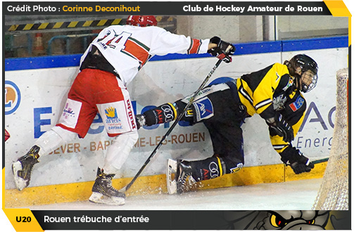 Perdre est une chose, perdre avec le sentiment d'injustice tenaillé au cœur en est une autre. A l'issue de la demi-finale U20 entre Hockey 74 et les Dragons de Rouen, l'amertume sera bien longue à dissiper dans le camp jaune et noir. Non pas que Hockey 74 ne mérite pas sa place en finale loin de là, la marge entre les deux formations étant infime et il était écrit que le vainqueur de cette série serait déterminé sur un détail, et du coté de la Normandie, on aurait espéré que la décision soit uniquement sportive et non le fruit d'un concours d'inconsistances, d'incohérences, d'absurdités arbitrales. Lancés à cœur perdu dans cette demi-finale, les deux formations s'échangeront coup pour coup dans le bon sens du terme tout au long du week-end. A l'ouverture du score de Hugo Dumont, Jeffrey Sidoit répondait sur le premier match alors que le troisième tiers permettait aux uns et aux autres de s'illustrer face aux filets : Nicolas Plaquevent et Lévy Raux chez les Dragons, Kévin Tassery et Bastien Zago chez Hockey 74.