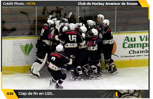 Une belle empoignade si serrée qu'à l'amorce de la dernière minute le score restait bloqué à 3-3. Alors que la table de marque venait d'indiquer le début de la dernière minute de jeu, une charge à la tête d'un défenseur rouennais ne laissait aucune ambiguïté, l'arbitre signalait la faute en levant le bras et lançait la pénalité différée. Le jeu se poursuivant, le palet finissait par atterrir dans la palette d'Enzo Cantagallo qui effectuait une « rim pass » en ayant le plein contrôle du palet. Stupeur dans les deux camps ! Alors que les deux équipes s'attendaient au coup de sifflet de l'arbitre, il n'en était rien, et plus malin que les autres, Clément Mermoux profitait de la situation pour tirer en direction de la cage rouennaise alors que la plupart des acteurs sur la glace s'était désintéressé du jeu, pensant le jeu arrêté par la prise de contrôle du palet jaune et noir sur la pénalité différée. But validé pour Hockey 74. A l'incompréhension succédait la colère dans le camp jaune et noir mais rien n'y fera, le fameux quatrième but était bel et bien validé et ce dernier pèsera très très lourd à l'issue de la rencontre du lendemain.