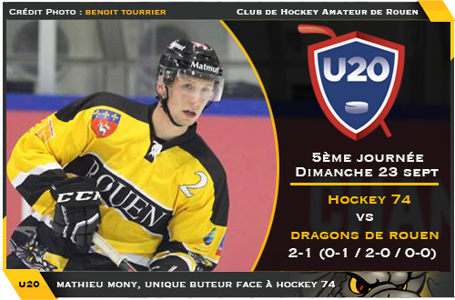 Du coté de la Normandie, on aurait bien souhaiter inventé le « jamais quatre sans cinq » comme dicton. Après avoir enchaîné quatre victoires de suite dans le cadre du championnat U20, les joueurs d'Ari Salo se seront brisés les quenottes au palais des sports de Megève avec une défaite 1-2 face à Hockey 74. Il est parfois bon de revenir à la base pour mieux comprendre les choses, lorsque l'on cherche la définition de « hockey sur glace » dans le « petit Robert », on y trouve la mention suivante : « sport qui oppose deux équipes de six joueurs et se joue avec une crosse et un palet »