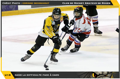 Face à une équipe de Caen orpheline de victoire avec un match nul pour une défaite, les Dragons U13 et leurs deux victoires depuis le début de la saison faisaient office de favoris sur leur glace de l'Ile Lacroix au moment des retrouvailles entre les deux formations normandes. Pour autant, si le classement laisse de la marge aux Dragons vis à vis de leurs voisins caennais, la rencontre sera loin d'être simple pour la troupe jaune et noir mis en difficulté à plusieurs reprises et contrainte de s'imposer sur la plus petite marge possible.