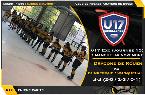 Toutefois, si l'orage du deuxième tiers s'était montré particulièrement dru au dessus des casques des Dragons en deuxième période, s'en sortant in extremis en menant au score d'un but à la deuxième sièrne, un dernier vingt minutes restait à jouer pour les deux formations et l'occasion sera donnée à Dunkerque / Wasquehal de revenir à parité. En effet, dans une partie où les Dragons n'auront finalement joué que vingt minutes, le temps du premier tiers, laisser repartir dans les Hauts-de-France l'équipe nordiste sans le moindre point aurait été fort injuste. Un sentiment sans doute partagé par Germain Dubois, déjà auteur de deux buts dans la rencontre qui troquait sa tenue de buteur pour celle de passeur à destination d'Amaury Fermyn, l'attaquant nordiste trouvant logiquement l'égalisation à 4-4 à quelques encablures de la sirène finale (56'43) Une parité méritée entre les deux formations et pas nécessairement une bonne affaire au classement pour les rouennais englués à la cinquième place et surtout toujours à la recherche d'une première victoire après quatre rencontres et un bilan de trois matchs nuls pour une défaite.