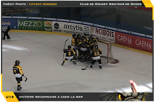 En expédition chez les Drakkars de Caen, les deux équipes U13 jaune et noir auront relevé vaillamment le défi du derby de la Normandie. A commencer par la deuxième équipe rouennaise qui, en dépit de deux premières périodes particulièrement emberlificotées, parviendra à s'imposer 5 buts à 3 au prix d'un troisième solide.