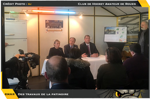 Ainsi, en introduction du point presse réalisé ce lundi 17 décembre dans l'une des loges de la patinoire de l'Ile Lacroix, Mr Frédéric Sanchez, Président de la Métropole Rouen Normandie précisait faire un « point, enfin diront certains, sur les travaux de la patinoire du centre Guy Boissière » En présence des quatre présidents des clubs résidents (CHAR, ESPAR, RHE 76 et ROC), des acteurs de la Direction de la Vie Sportive de Rouen et de quelques journalistes locaux, David Lamiray, Maire de Maromme et Vice-Président de la Métropole prenait soin de souligner la « belle collaboration entre la Ville de Rouen (représentée par Madame Sarah Balluet), la Métropole Rouen Normandie et les clubs résidents. On parle souvent du RHE comme vitrine du centre Guy Boissière mais c'est également beaucoup d'usager, de licenciés qui fréquentent l'établissement.
