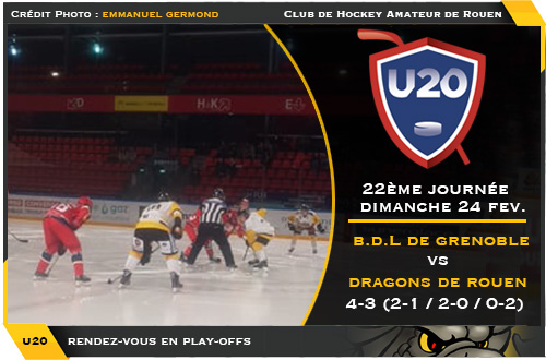 A Rouen vendredi, à Morzine samedi en D2, à Grenoble dimanche en U20... à l'école lundi... Pas de tout repos ce week-end pour la troupe rouennaise qui bouclait sa fin de semaine en Isère avec une belle confrontation face aux Brûleurs de Loups de Grenoble pour clore la saison régulière.