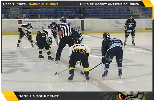 Se faisant piéger d'entrée de jeu sur un tir de pénalité converti par David Camy-Sarty (43'31), pour les rouennais la situation à nouveau se compliquait avec à nouveau deux buts de retard à un gros quart d'heure de la fin du match. Un gouffre pour les Normands qui ne parvenaient pas à profiter ses opportunités offertes en avantage numérique (44'31, 46'24 & 52'17) Un manque d'opportunisme en avantage numérique d'autant plus criant que la dernière prison tourangelle (57'48) offrait une double power-play pour les Dragons avec le retrait du portier jaune et noir. Deux joueurs en plus sur la glace pour deux buts... coté Tourangeaux. Alors que sur le banc jaune et noir, on espérait un retour in extremis dans la course, c'est un tout autre scénario qui se déroulera, David Camy-Sarty s'offrant le triplé avec un but en cage vide (58'33) avant de voir Pablo Maltas toujours en infériorité numérique conclure la rencontre sur le score de 7-3 (58'42) Triste fin de rencontre.