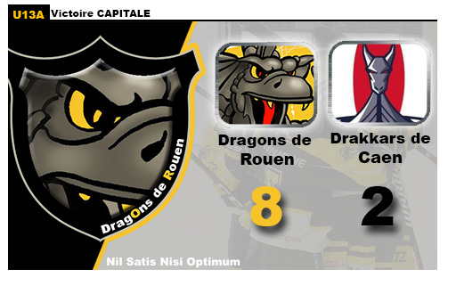 Quatuor de tête depuis le début de la saison, les quatre premiers de la poule U13 Nord-Est avaient l'occasion ce week-end de s'expliquer avec deux succulentes confrontations entre Rouen et Caen d'un côté et Amiens, Cergy de l'autre. Alors que sur sa glace, les Gothiques d'Amiens ne feront qu'une bouchée, à domicile, des franciliens des Jokers de Cergy (8-3), les Dragons profiteront de leur rencontre disputée sur les bords de Seine pour faire, également, une démonstration offensive. Vertement battus au match aller 5-2 à la patinoire de Caen La Mer, les Dragons avaient, ostensiblement, à cœur de remettre les pendules à l'heure et rappeler à tous que la Capitale du hockey en Normandie est à Rouen. Premiers à ouvrir le score (05'27), les Rouennais ne souffriront que de peu d'opposition dans cette première période avec un total de trois buts marqués dans le premier quart d'heure (08'48 & 15'34) Si les Drakkars de Caen, ébranlés, parviendront, avant la première sirène, à réduire le score (15'35), cela ne suffira pas pour mettre un terme aux élans offensifs de rouennais, bien taquins, qui rajouteront un quatrième et dernier but dans le premier tiers (17'07)