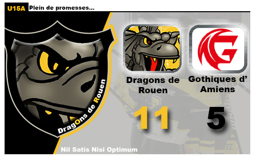 Du dernier entre les deux formations, il ne sera quasiment question que de rouge et de noir même si d'entrée de jeu, Tim Aubry ajoutait un onzième but dans l'escarcelle des Dragons (43'00) Le dernier pour le clan jaune mais certainement par le dernier de la partie puisque trente secondes plus tard, Hugo Godreuil mettait à nouveau un grain de sable dans l'engrenage de la machine rouennaise (43'30). Et du sable, il y en aura dans la mécanique jaune et noir jusqu'à l'heure bien huilée. Moins mobilisés, les rouennais donnaient à manger à des amiénois qui retrouvaient de l'appétit. Au troisième but amiénois succédait un quatrième pour Nathan Vasseur (49'46) puis un cinquième pour Hugo Godreuil (52'08) Trois buts en dix minutes et un retour à 11-5 pour les amiénois. Certes, les Dragons n'avaient que peu à craindre de ce retour en grâce mais il n'en restait pas moins que l'épisode grisait un soupçon la belle partition jouée jusqu'alors. Pour autant, c'est 16ème match sans défaite de suite face aux Gothiques que les Rouennais iront chercher avec ce score de 11 buts à 5. Plutôt satisfaisant pour le clan Dragon.