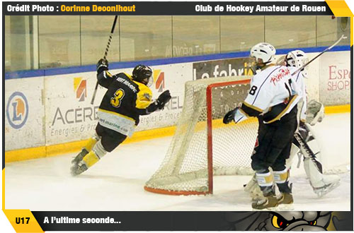 Alors qu'il ne restait qu'officiellement une journée, la 22ème, à jouer, l'incertitude restait de mise notamment au sein de la poule A du championnat U17A avec de nombreux matchs reportés qui pèseront lourds lors du décompte final. Tandis que les Dragons de Rouen se préparaient à un joli marathon pendant les vacances de février avec trois matchs programmés à Briançon, Grenoble et Hockey 74 avant de recevoir en clôture sur l'Ile Lacroix les Brûleurs de Loups de Grenoble, une dernière occasion était offerte aux rouennais de faire vaciller le leader amiénois à l'occasion de la 20ème journée de championnat. Humiliés par trois fois en trois rencontres face à Amiens, un doublé de Robin Rabl changera radicalement la donne de cette quatrième et dernière confrontation face à la troupe picarde. Deux buts importants que la réduction du score de Lucas Besson à trois secondes de la sirène finale ne mettaient pas à mal au terme d'un match référence pour les Dragons. Leaders du championnat, les Gothiques venaient de céder enfin face aux Dragons 2 buts à 1 (résumé) Un soulagement pour les rouennais, une bouffée d'air, un déclencheur pour une fin de saison totalement folle même si dans le même temps, sous l'oeil intéressé des rouennais vissés sur leur portable pour suivre la fin de rencontre, Hockey 74, mené 4-2 à domicile par Grenoble, retournait la situation totalement pour s'imposer 5-4 en prolongation. Une déception pour la troupe jaune et noir qui comptait fort sur ce match pour faire basculer le classement.