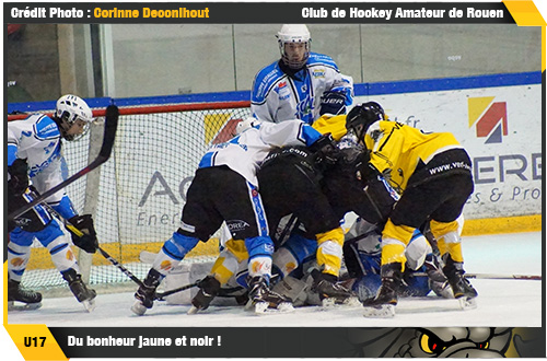 Quel adversaire en quart de finale pour les Dragons ? Durant deux semaines, la question restera posée avec deux premiers tours de play-offs marqués par l'absence des équipes de la Poule A. Dans l’expectative, les Dragons attendaient théoriquement une équipe de la Poule B en l'occurence, les Diables Rouges de Briançon pour la quatrième année consécutive. Toutefois, la logique des poules ne sera pas celle de la glace et c'est l'Etoile Noire qui viendra défier les Dragons sur sa glace après son succès acquis dans les Hautes-Alpes (5-4 & 7-3) (résumé) Accueillir dans le cadre du championnat cadet, l'Etoile Noire de Strasbourg n'est pas chose courante sur les bords de Seine. Alors qu'il faut remonter au 16 avril 1999 pour trouver trace d'une rencontre entre Strasbourg et Rouen avec à la clef une victoire des Dragons 6-0, 18 ans plus tard, les deux équipes se retrouvaient pour une édition totalement différente avec deux matchs à négocier à la patinoire de l'Ile Lacroix en quart de finale. Sujette de bon nombre de conversation cette semaine chez les U17, l'Etoile Noire de Strasbourg aura fait honneur à sa réputation à l'occasion de la première rencontre des quarts de finale U17, celle d'une équipe sérieuse et travailleuse qu'il ne fallait surtout pas prendre à la légère. L'ouverture du score pour les Alsaciens en l'occurence pour Paul Lepineau, Rouen, après tant de déboires en saison régulière, ne pouvait galvauder son premier tour de play-offs en gâchant tout. Ramenant le score à parité par Lévy Raux, Paul Levreux et Samuel Rousseau s'échangeaient des buts dans la foulée, une incertitude latente qui durera jusqu'au début du troisième tiers avec le début de la furia offensive jaune et noir : Arthur Zavani, Robin Rabl, Lévy Raux se succèderont pour tromper la vigilance du gardien strasbourgeois (résumé) Vainqueurs de la première manche, Rouen rejoignait dans le camp des vainqueurs, Grenoble facile face à Angers (4-0), Hockey 74 en difficulté face à Gap (3-2) alors qu'Amiens, étonnamment à la peine, devait se contenter de la parité à 5-5 face à Anglet (résumé) La nuit passée en Normandie n'aura guère été profitable pour les strasbourgeois. Très marqués par leur trois buts de retard du premier match, l'Etoile Noire se présentera pour la deuxième manche dans un état d'esprit de supplicié. Face à des Dragons gourmands en l'espace de vingt minutes l'affaire était pliée avec un doublé d'Arthur Zavani et un but de Robin pour le 3-0, fin du premier tiers. Certes, dans le troisième tiers, Strasbourg fera illusion avec trois buts mais là encore les rouennais débridés et décontractés faisaient tourner les compteurs avec quatre buts. Si le dernier but sera alsacien dans le troisième tiers, les rouennais vainqueurs de la deuxième manche 7-4 (résumé) pouvaient se satisfaire d'un tour de play-offs rondement mené et pleinement maitrisé. Si dans la partie de tableau de play-offs, aucune surprise n'était à souligner, Grenoble s'adjugeant un deuxième solide succès face à Angers, de l'autre côté c'est un double coup de tonnerre qui ponctuait la fin du premier tour. Gap s'imposant 6 buts à 4 face à Hockey s'offrait un scintillant ticket pour les demi-finales alors qu'encore plus fort, Anglet au prix d'un match démentiel sortait 5-4 le vainqueur de la saison régulière Amiens (résumé). Tonitruant !