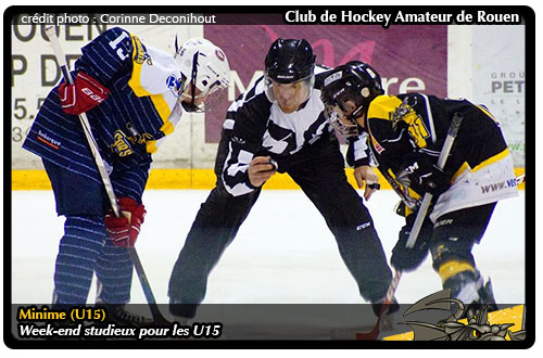 A raison de deux matchs par week-end quasiment systématiquement, sur un rythme endiablé, les rouennais avalaient les rencontres avec enthousiasme mais laissaient de nombreuses forces dans la bataille à l'image de ce premier week-end de novembre où les Dragons devront batailler fort pour maintenir leur suprématie au classement. En effet, à la maison face à Caen, de premières failles seront visibles dans le camp rouennais même si ces derniers raviront à nouveau les deux points de la victoire. Face à la modeste équipe de Caen (2) toujours orpheline de points, les rouennais se feront accrocher tout au moins le premier tiers avec deux égalisations caennaises à 1-1 puis 2-2. Si deuxième tiers sera plus prolixe offensivement avec six buts marqués pour deux concédés, les rouennais sur l'ensemble du match encaisseront tout de même six buts bien que largement vainqueurs 11-3. Dès le lendemain, il fallait prendre la route pour Dunkerque pour y croiser les crosses avec les Corsaires en association avec leurs voisins de Wasquehal. Les lions corsaires, sur leur terrain gelé, donneront du fil à retordre aux rouennais. Bien que dans la pénombre avec une seule victoire en trois rencontres, les nordistes vendront chèrement leur peau en chassant le score sans jamais s'épuiser. Alors que Rouen caracolait en tête depuis l'ouverture du score d'Anthony Demay dans les deux premières minutes de jeu, Dunkerque s'accrochait jusqu'au passage de la mi-match, moment où le momentum basculait. Devant au tableau d'affichage à 5-2, en se faisant perforer par trois fois, les Dragons voyaient leur avance chèrement gagnée prendre la poudre d'escampette et lorsqu'au début du troisième tiers, Mathias Thomas ramenait le score à 5-5, c'est un tout autre match qui débutait alors même si la réaction rouennaise se faisait efficace avec les buts d'Hugo Maillard et Jordan Hervé. 7-5 puis 7-6 avec une nouvelle réduction du score dunkerquois et huit minutes de matchs restantes qui sembleront une éternité pour des dragons sous pression finalement victorieux 7-6 au forceps. Rendus à la mi-novembre avec sept matchs déjà joués contre trois pour leur prochain adversaire, Cergy, il ne restait plus que deux matchs pour que les rouennais clôturent leur année 2015. Face à Cergy, les failles entrevues précédemment seront désormais bien saillantes. Electrisés par le triplé de leur attaquant vedette, Paul Schmitt, les Jokers de Cergy mettront un terme à la belle série de victoires jaune et noir. 5 succès de suite pour les Dragons interrompus par la victoire cergyssoise 5 buts à 4. Si ce deuxième revers de la saison ne fera pas office de stop rédhibitoire pour les Dragons avec dans la foulée un large succès sur l'association Deuil / Garges 8 buts à 1 (résumé) avec un festival offensif de Tomas Simonsen et Léonard Baril, tous deux titulaires de cinq points, avec la longue interruption de deux mois de compétition pour les Dragons au regard de son avance en terme de matchs, les autres équipes s'en donneront à cœur joie pour rattraper leur retard au mois de décembre.